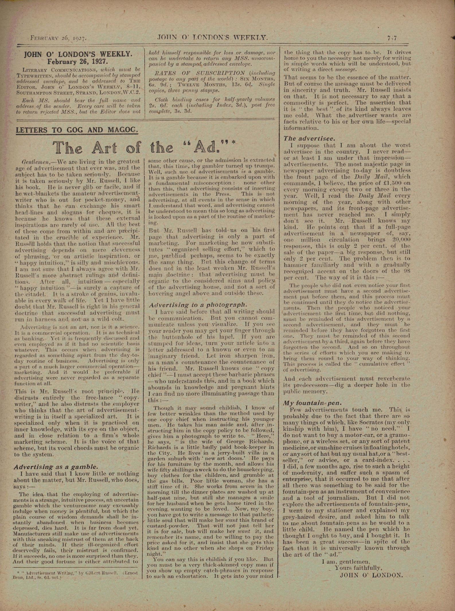 John O' London's Weekly (London, UK)